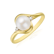 Radiate luxury with this 9ct Yellow Gold diamond set twist ring featuring a white fresh water pearl.
