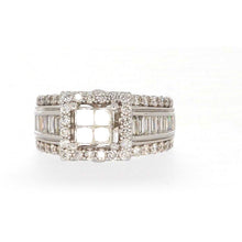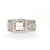 Every piece in the New York Collection is designed to make a bold and glamorous statement, inspired by the city that never sleeps. This 14ct White Gold ring featuring four princess cut diamonds surrounded by an open frame square halo, is complimented with a multi row band set with baguette and round brilliant cut diamonds totalling 2 Carat tw.