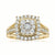 Make a statement with this 9ct Yellow Gold ring. A centre diamond is surrounded by a shimmering cushion shaped double halo complimented by a diamond set split shank, totalling 1 Carat tw.