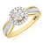 The London Collection is inspired by the luxury, beauty and elegance of Britain. A created ruby and sapphire signifying the British flag is hidden in every piece. This 9ct two tone ring features a cluster of diamonds surrounded by a sparkling halo. Diamonds lining the centre of the band are bordered by polished yellow gold, totalling 1/2 Carat tw.