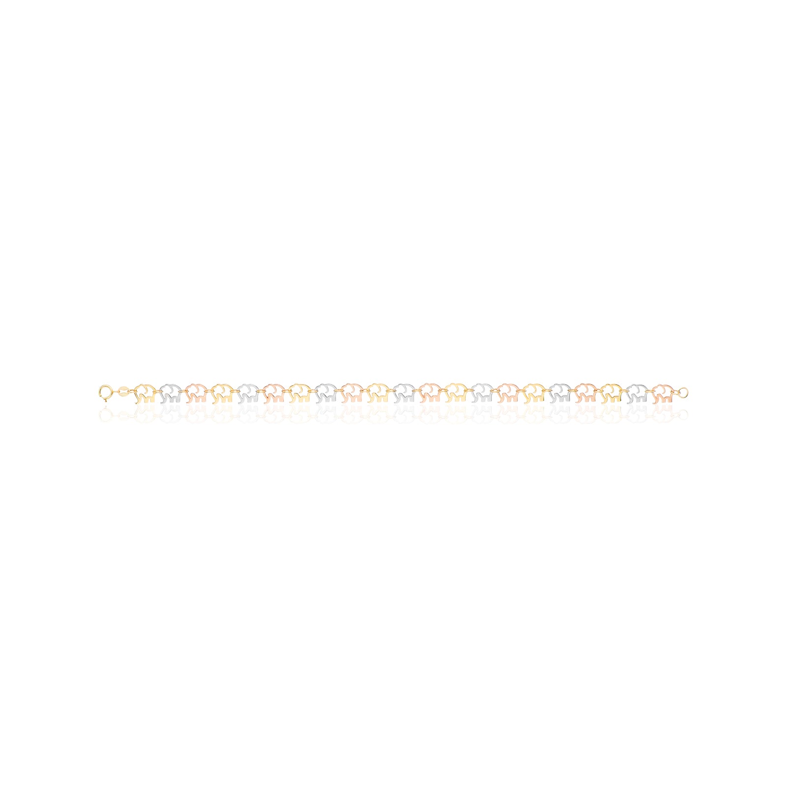 Evoke the beauty of the animal kingdom with this sophisticated and exclusive 9ct rose, white and yellow gold elephant bracelet. Expertly crafted for a lasting quality, this 19cm bracelet lends a tasteful touch of elegance to any wardrobe. Perfect for elevating any look.