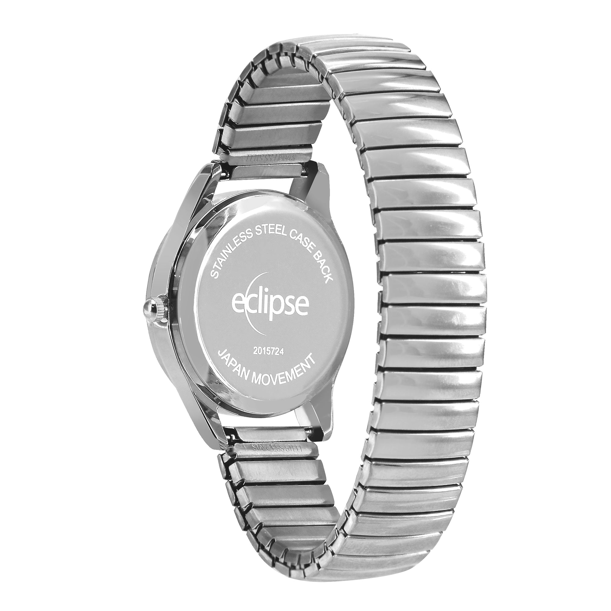 Introducing the Eclipse Stainless Steel Round Dial Silver Band Watch. Crafted with precision and elegance, this timepiece boasts a stainless steel band and round dial, exuding sophistication and luxury. Enhance your style with this exclusive watch, perfect for any occasion.