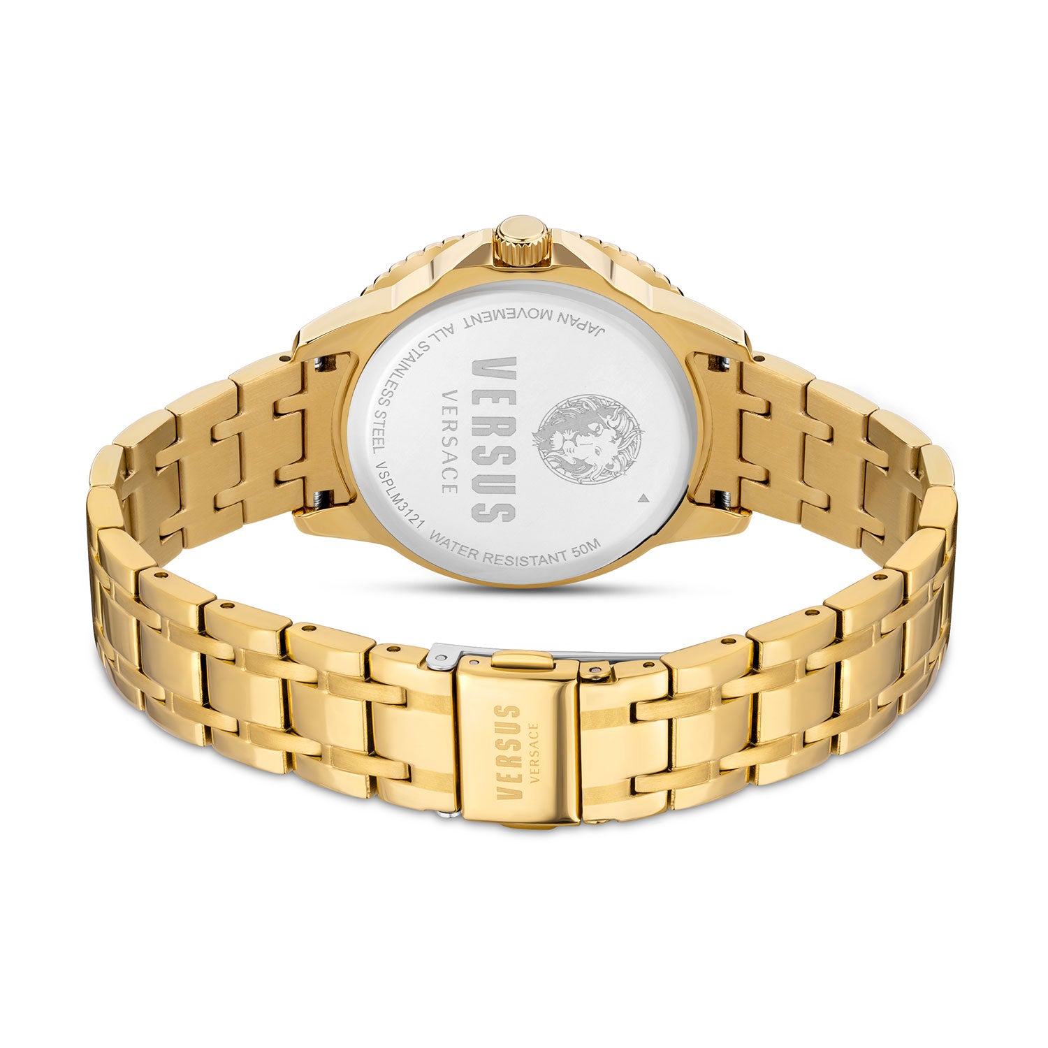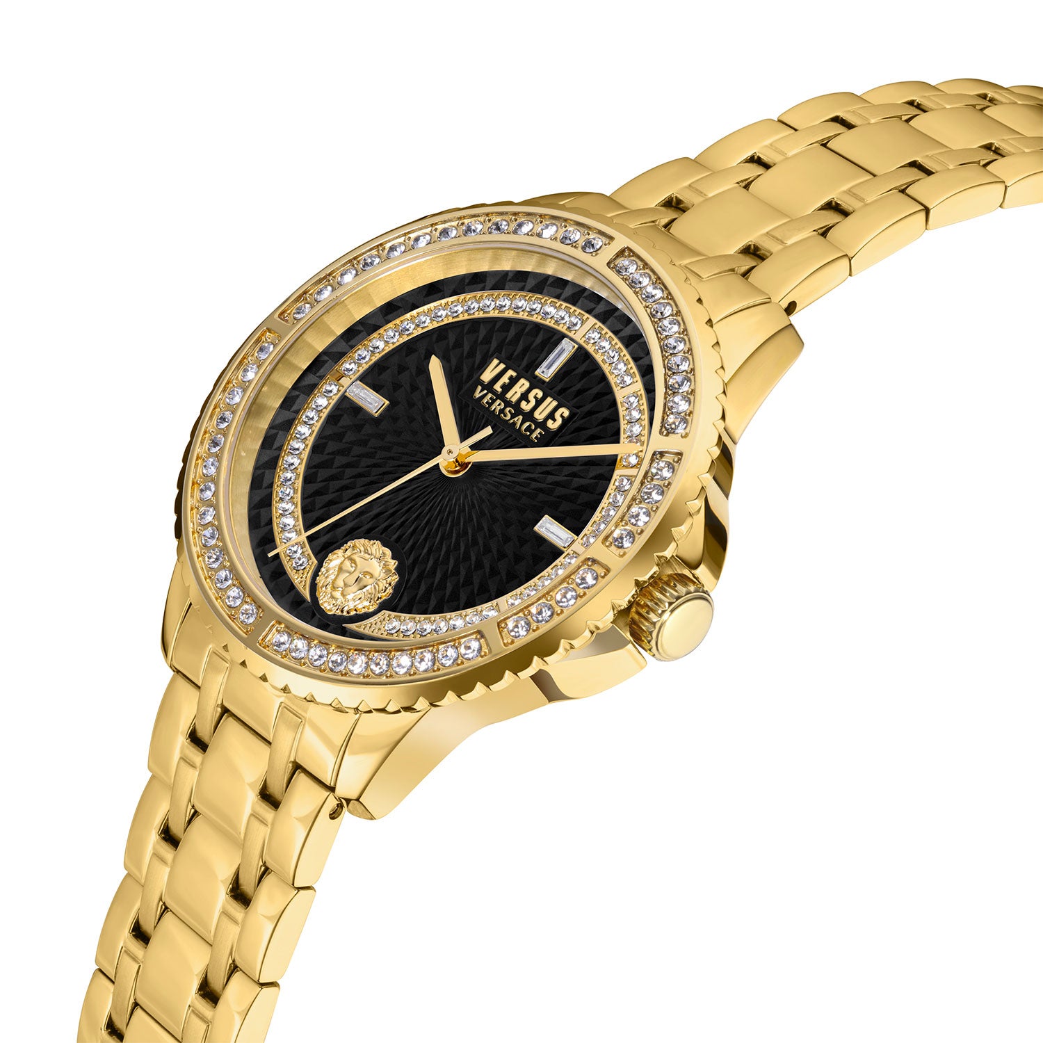 Indulge in luxury with the Versus Versace Montorgueil Watch V WVSPLM3121. This elegant ladies watch features a 38mm case, black dial, and quartz movement. Its yellow gold colour adds a touch of sophistication, while its 50m water resistance ensures durability. Elevate your style with this timepiece.