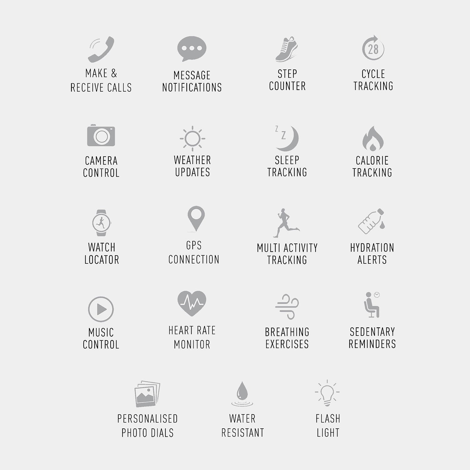 The intuitive interface provides quick access to all your essential features and notifications, ensuring you're in control. The responsive 1.38" touch screen makes navigation a breeze, and the durable, stylish IP67 design is built to withstand your daily adventures with up to 5 day battery life and soft silicone strap.
