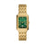 The rectangular Raquel watch is a new classic, updated for the current moment. Slim and versatile, this one-of-a-kind timepiece features a genuine malachite stone dial, three-hand date movement and a brushed and polished gold-tone 7-link bracelet.