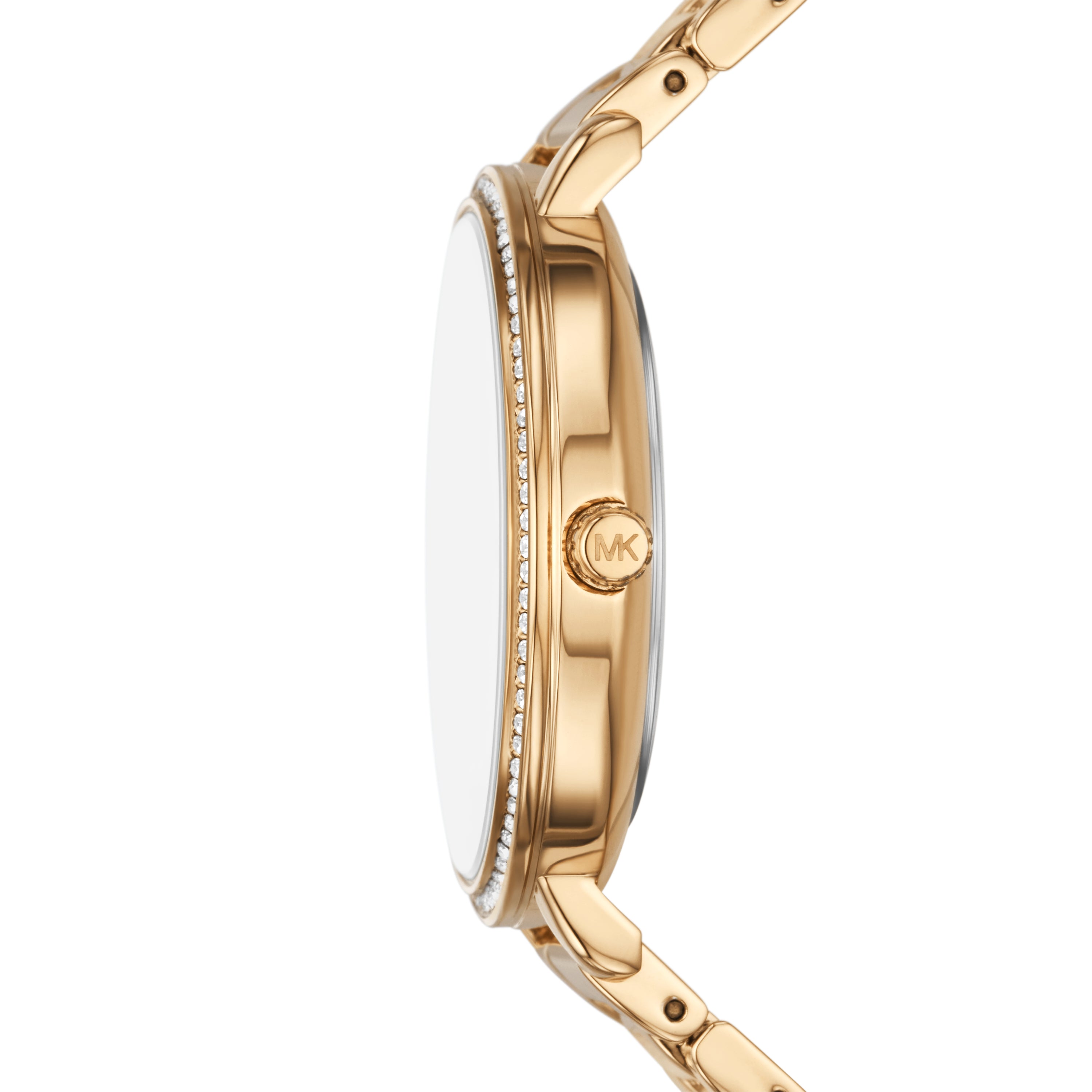 An instant classic, our 38mm Pyper is the perfect new addition to your wardrobe. This gold-tone alloy watch features a white stamped logo dial with glitz indexes and a pavé topring for just the right touch of sparkle.