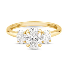 A moment worth celebrating forever. This stunning ring features a trio of oval cut lab grown diamonds with a totaling weight of 1.5 carats, set in 9ct yellow gold. The elegant three stone design captures the beauty of past, present, and future in one timeless piece. Whether you're marking a special milestone or treating yourself, this piece is modern, luxurious and stunning.