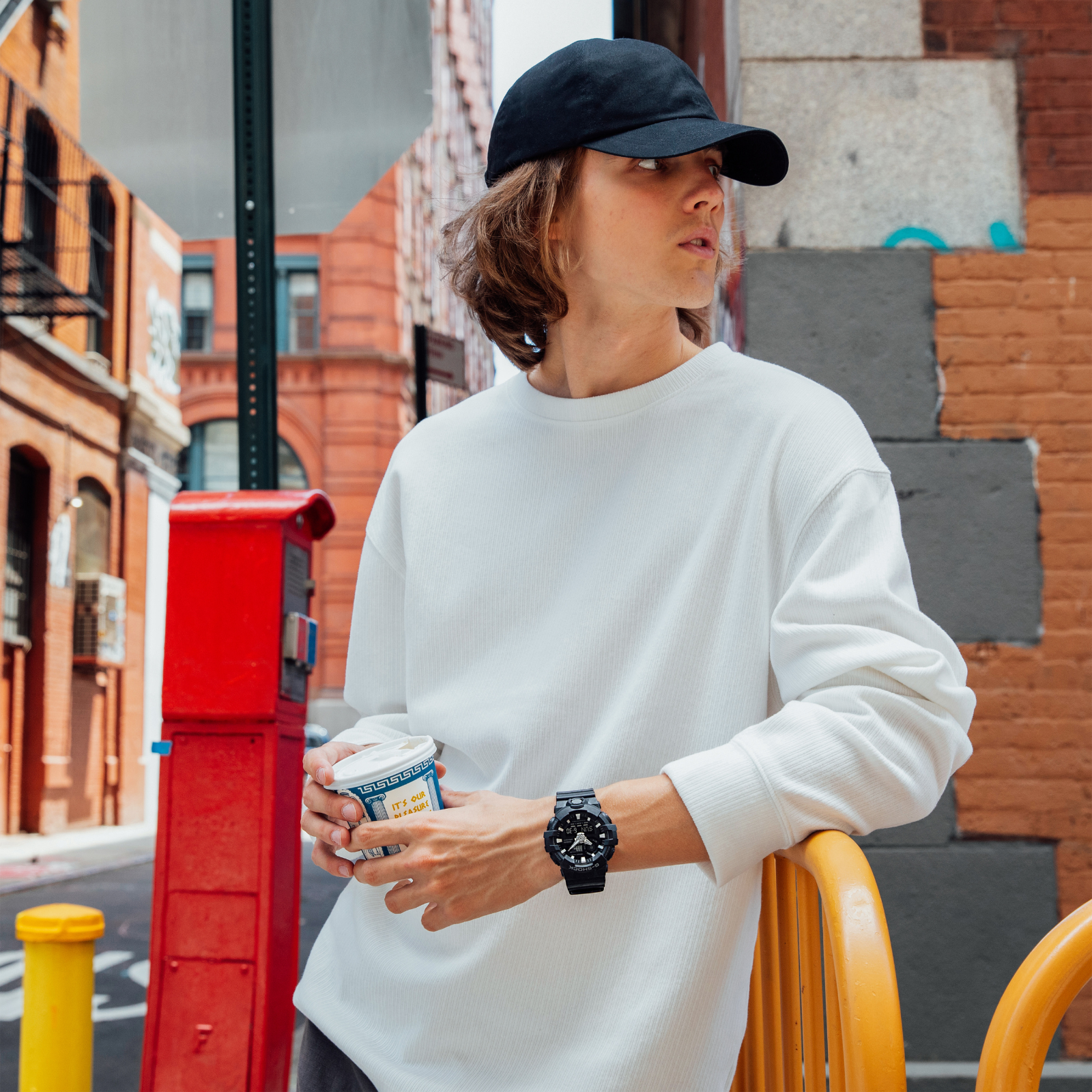 An analog-digital combination model with a front button, the iconic face of G-SHOCK symbolizing toughness, placed at the 6 o'clock position. Finished with dynamic styling that is both advanced and edgy. Improves readability using bold hands that are thick and powerful like carved metal, created using proprietary resin molding technology for the three-dimensional hour and minute hands. It also features a 3D face design achieved by making the dial ring and indices three dimensional to create synergy with the bold hands. Expresses toughness of spirit with the black color that symbolizes the brand concept. The super illuminator and hand shift function operated via the front button provide a high level of usability. A G-SHOCK that combines strength and a proprietary tough design with a 3D face.