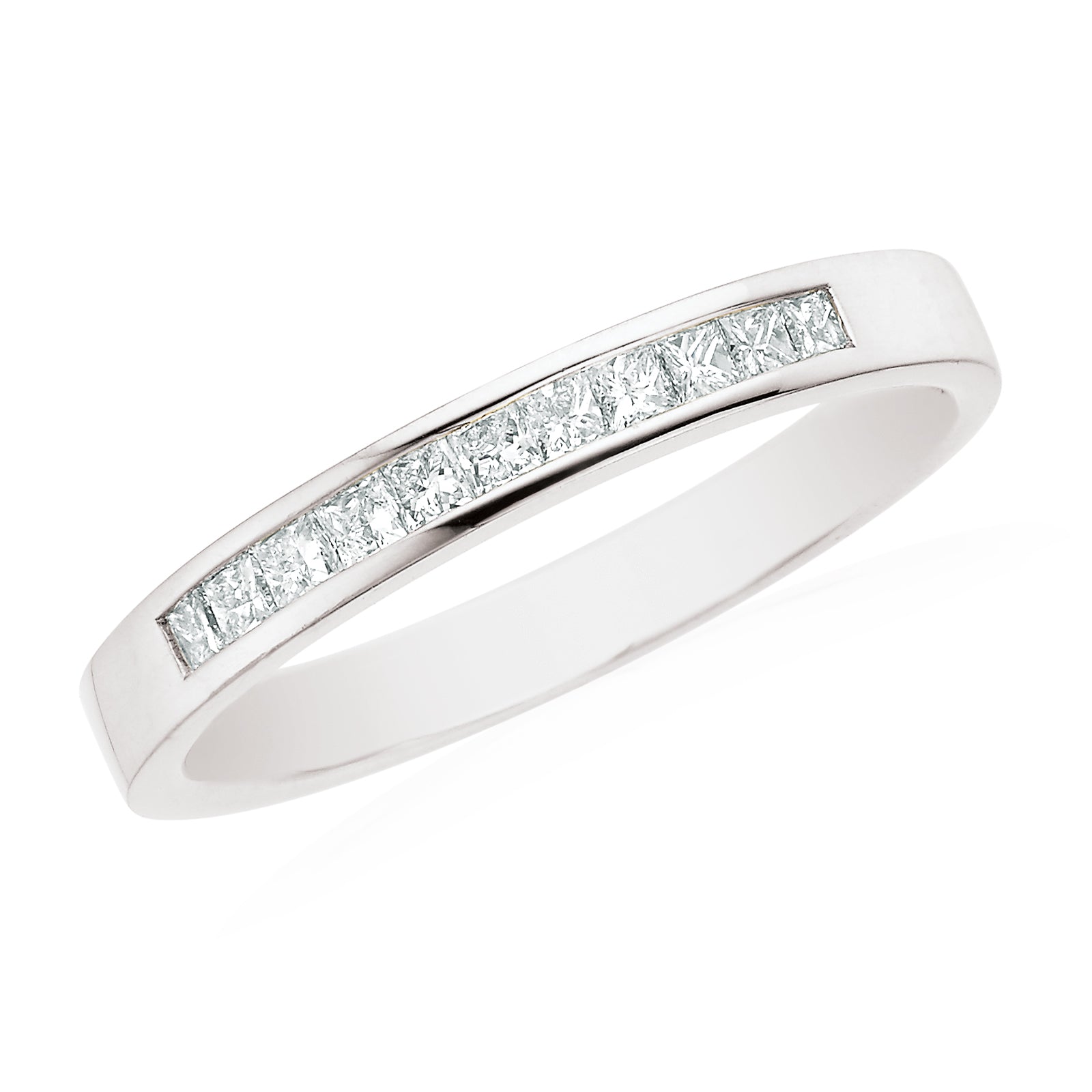 This 9ct white gold with princess cut 1/4 carat tw of diamonds wedding band is the perfect symbol of everlasting love.