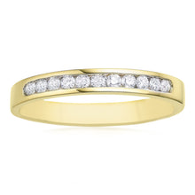 This 9ct Yellow Gold channel set band with a total of 1/4 Carat tw of diamonds, is the perfect symbol of everlasting love. Also available in White Gold.