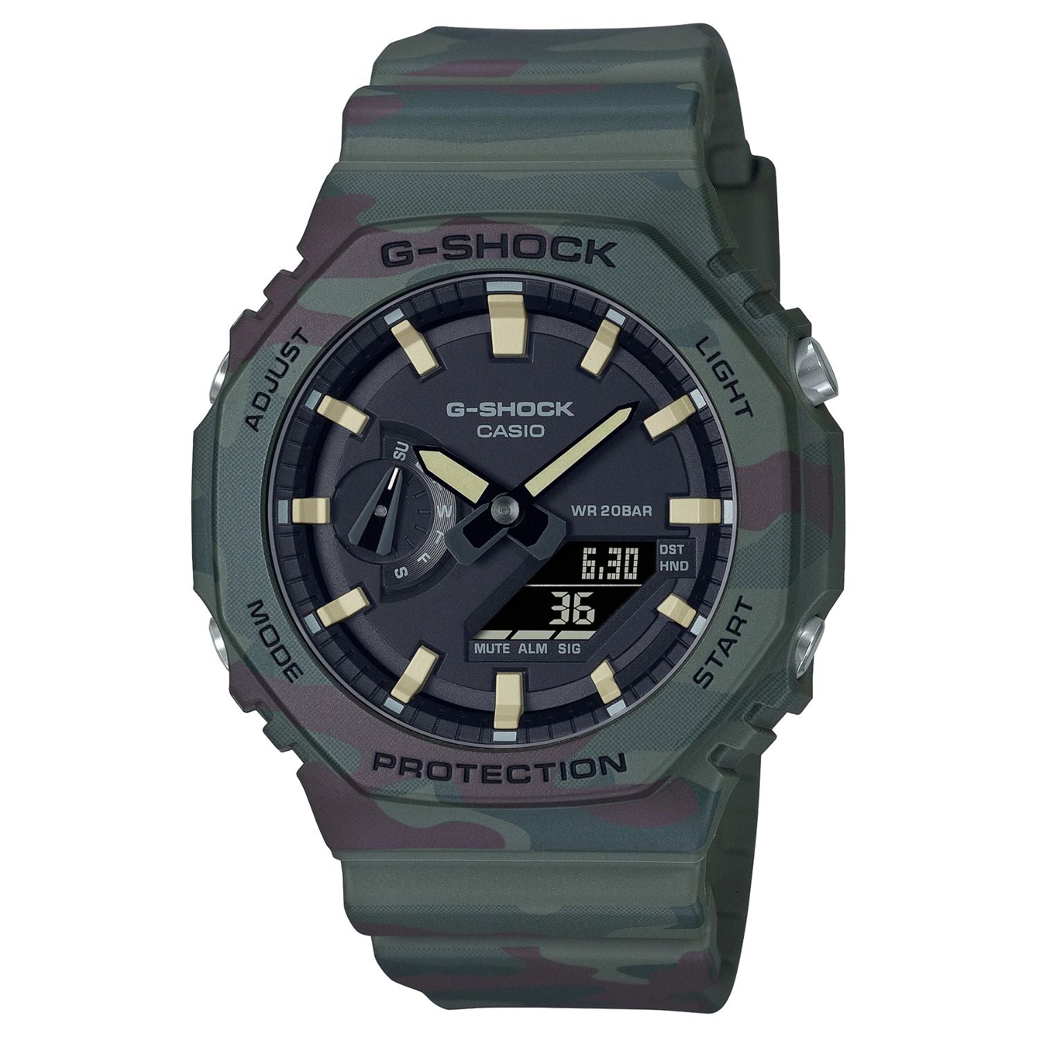 Switch between interchangeable bands and bezels for a thin octagonal GAE-2100 with an even wilder spirit. Green nature-inspired camouflage and vibrant outdoor-fashion orange take you from fashionable urban streets to wilderness exploration in cool, casual style.