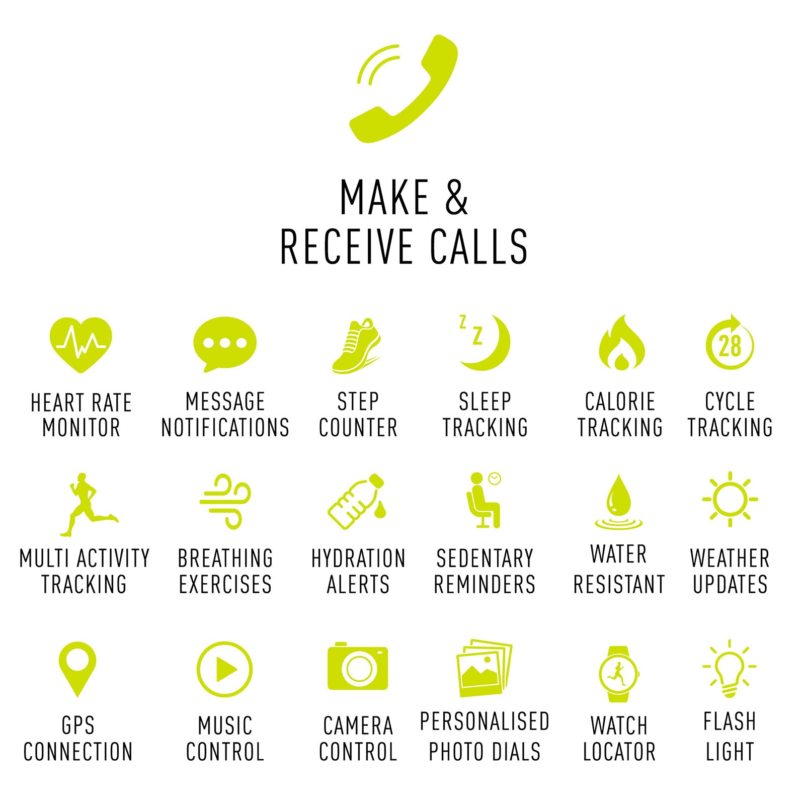 The hands-free call feature allows you to make and receive calls directly from your watch, anytime, anywhere. Scrambling for your phone in your pocket or bag is now a thing of the past!